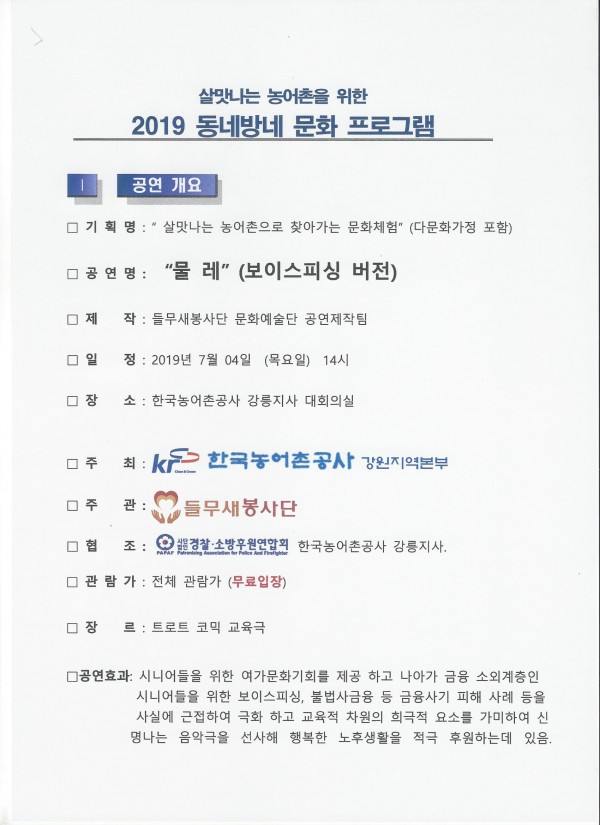 살맛나는 농어촌을 위한 2019 동네방네 문화 공연 (보이스피싱 예방)