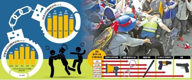 경찰 관계자는 “민주노총 폭력사건에서 보듯이 수십 명이 체포돼도 기소되는 사람은 한두 명”이라며 “경찰보호법을 따로 제정해야 할 판”이라고 말했다.