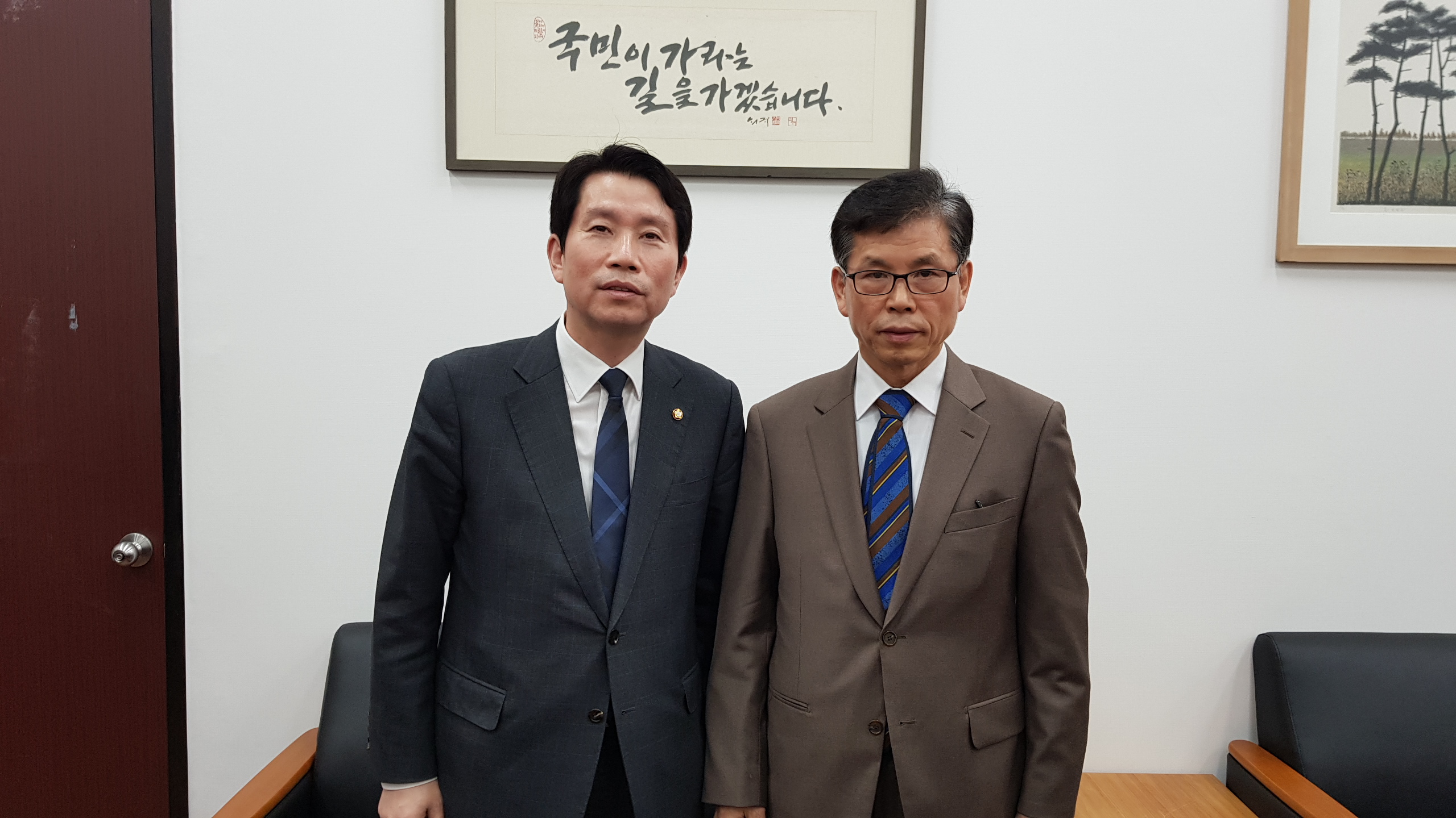 2020년 2월 13일(목) 오전 10시 30분, 이학영이사장, 양일남사무총장, 양세정박사 그리고 최계호사무국장은 국회본관 민주당국회의원 이인영원내 대표실을 방문했습니다. 요즘 국정업무로 매우 분주하시지만, 더불어민주당 이인영 국회의원은 연합회 임원인 우리 일행을 따뜻하고 반갑게 맞이해 주셨습니다.(이 시간을 통해 다시한번 정말 감사의 말씀을 드립니다.)