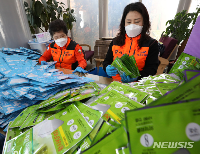서울 강서소방서 의용소방대원 34명은 강서구 작업재활센터에서 마스크 포장 지원 등에 나서 마스크 생산량아 하루 만 장에서 만5천 장으로 늘어날 전망입니다