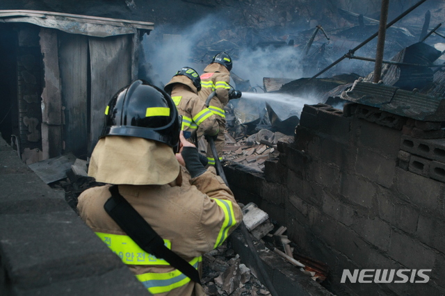 【동해=뉴시스】지난 4월 4일 강원 강릉시 옥계면에서 발생한 산불을 진화하기 위해 소방대원이 사투를 벌이고 있다. (사진= 뉴시스 DB)