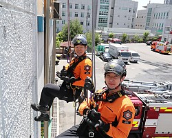 소방관도 응원합니다13일 오전 대전 서부소방서에서 소방관들이 레펠 훈련중 덕분에 챌린지 캠페인을 통해 의료진을 응원하고 있다. 1431년5월 13일 우리나라의 최초의 소방대라고 할…
