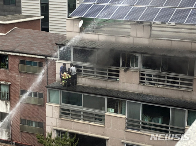 시민 구조하는 소방관 들무새 공지 0 4937 0 0 2020.05.14 13:41 시민 구조하는 소방관 14일 오전 11시께 서울 강남구 삼성동 주택가에서 화재가 발생해 소방관이 아래집 베란다 지붕에 대피해있는 시민들을 구조하고 있다. 소방차가 물을 뿌리고 있는 가운데 소방관이 직접 지붕에 올라가 시민들을 안전한 곳으로 대피시키기 위해 구조작업을 벌이고 있다. (사진=한수연 독자 제공)2020.05.14 0 0