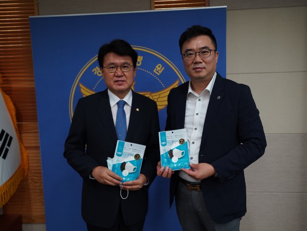 황운하 국회의원님과 경찰병원에 기부품인 MK 은나노 마스크를 전달하다